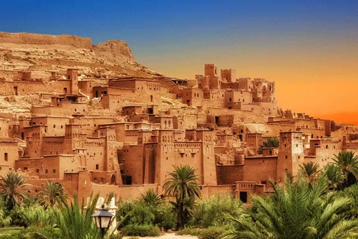 Begin your return journey, traversing Morocco's diverse southern landscapes. Travel through the vast Tafilalet palm groves and the historic market town of Rissani. Marvel at the stunning Draa Valley, Morocco's longest river valley, adorned with numerous Berber kasbahs. Cross the Anti-Atlas Mountains, enjoying spectacular panoramic views, before arriving in Ouarzazate for dinner and your overnight stay.